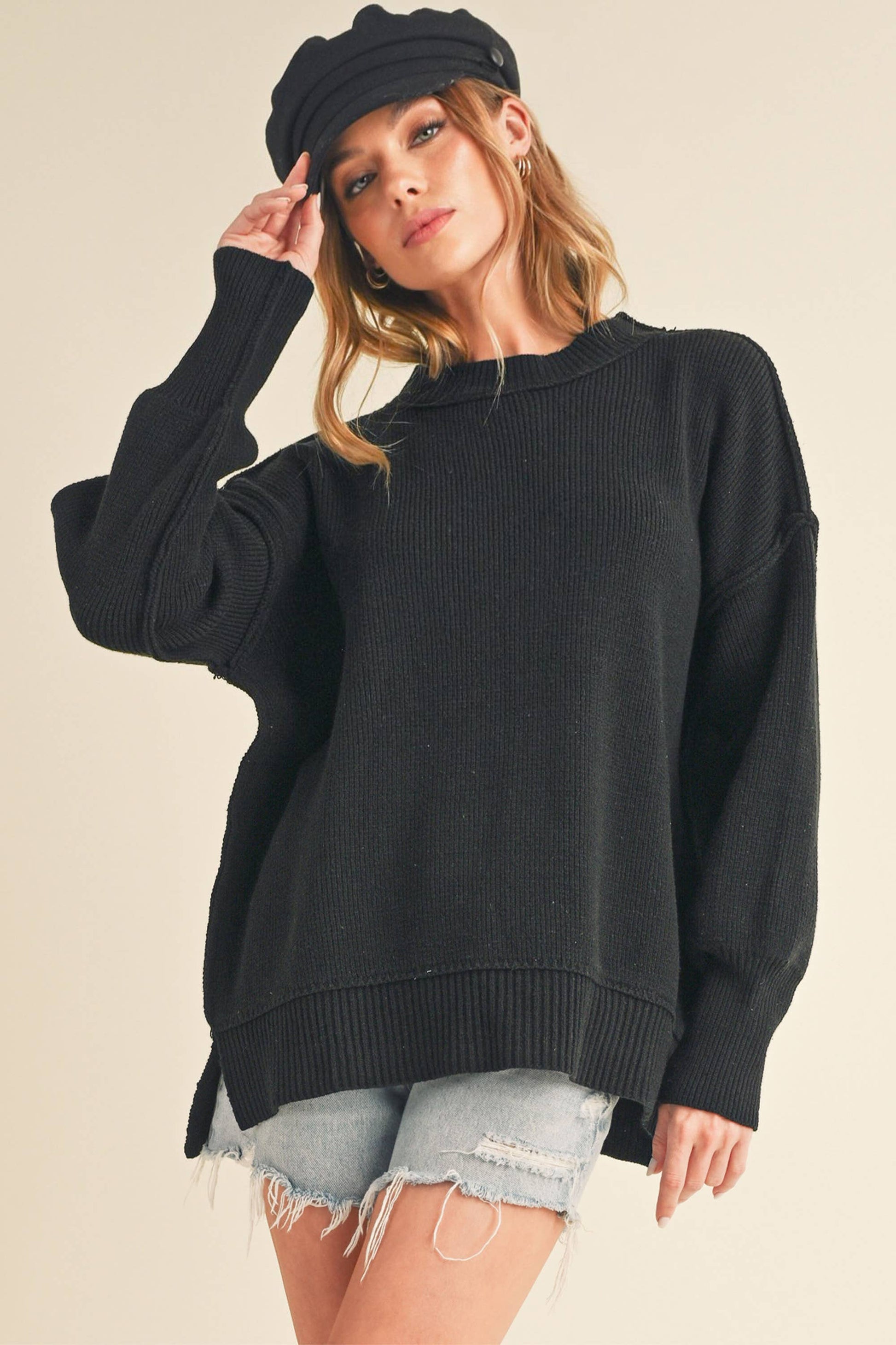 The Ina sweater effortlessly blends charm and versatility. She's designed as a adorable pullover style, boxy, slouchy silhouette, exposed seams, and side slits, it's a wardrobe essential. Transition effortlessly from gym sessions to fun girls' nights out, embodying casual chic comfort as the perfect go-to piece.