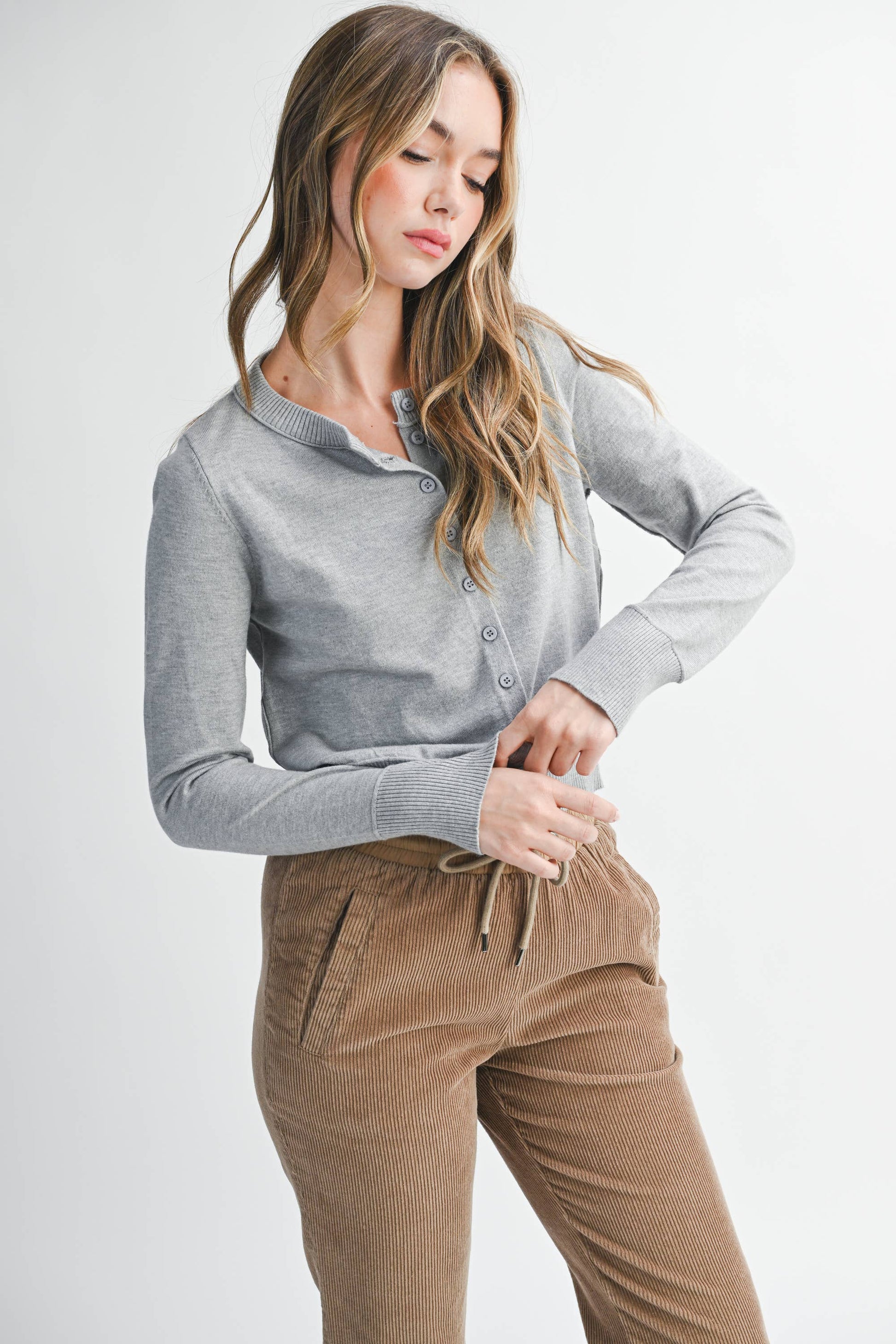 AEMI + CO - 5176GN Ribbed Button-Up Knit Cardigan