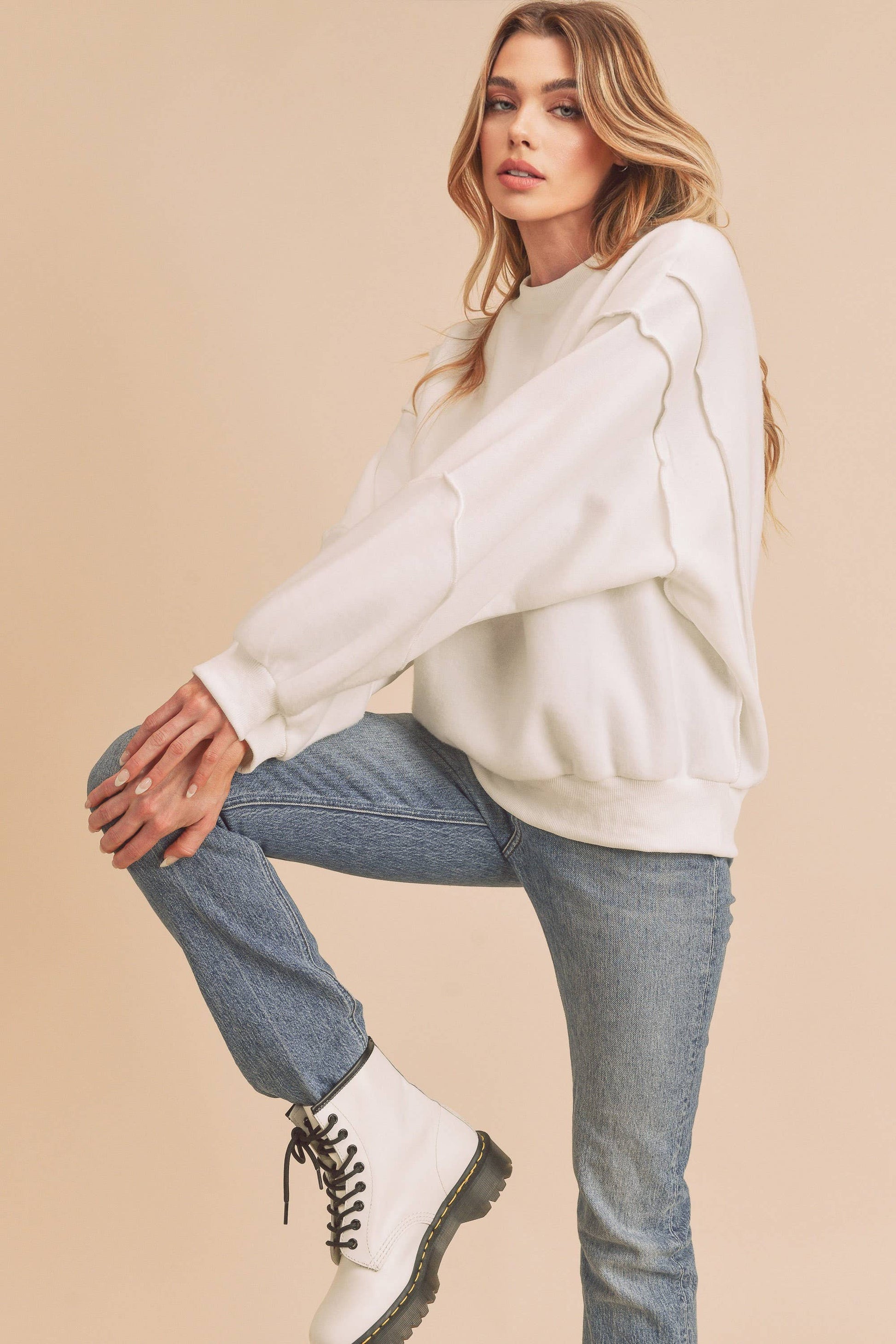 This Ellia Sweatshirt shape with an oversized silhouette, featuring a drop shoulder with seam detailing throughout, offers a comfy and slouchy style.