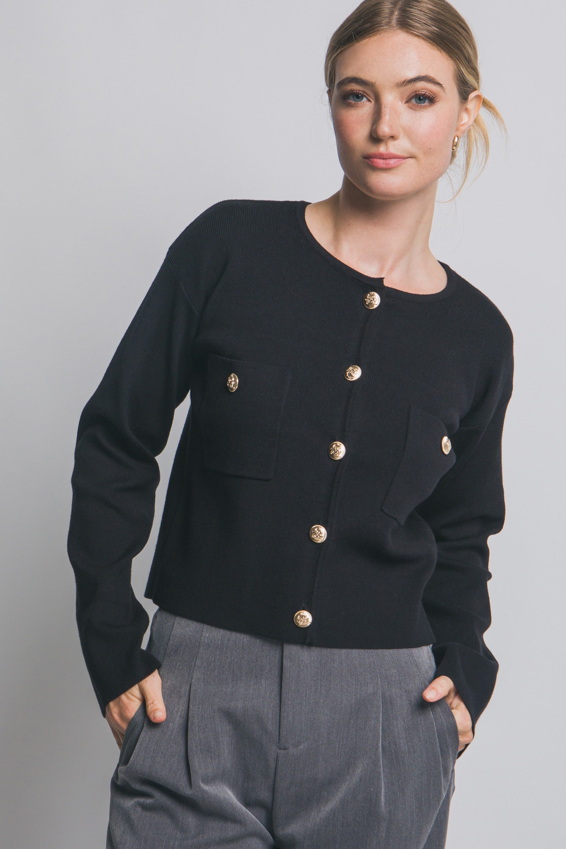 gold buttons, 52% viscose, 30% poly, 18% nylon